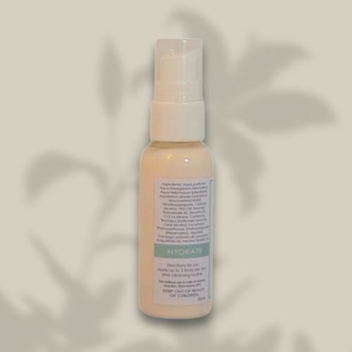 Aqua, Rose Geranium Hydrosol, Helichrysum Hydrosol, Rooibos Extract, Niacinamide, Vegetable Glycerin, Hemisqualane, Capric Triglyceride, Allantoin, Vit. E, (Lavender & Peppermint Ess oil <0.2%).